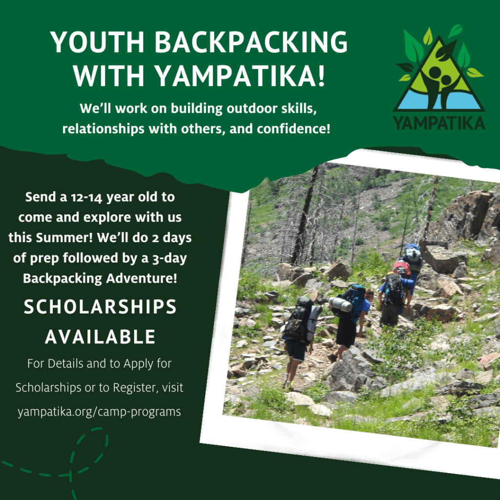 Registration is now open for Yampatika’s new Wilderness Rangers program for ages 12 – 14. Learn more and sign up today!